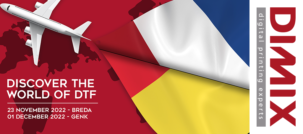 Hoog kwalitatieve textieltransfers produceren gaat dankzij de Dimix Transfer-Jet & Powder-Fix combinatie makkelijker dan ooit. Tijdens de Dimix Discover DTF Days op 23 november en 1 december zijn er live demo’s, DTF product presentaties en leert u alles over deze nieuwe innovatie! .