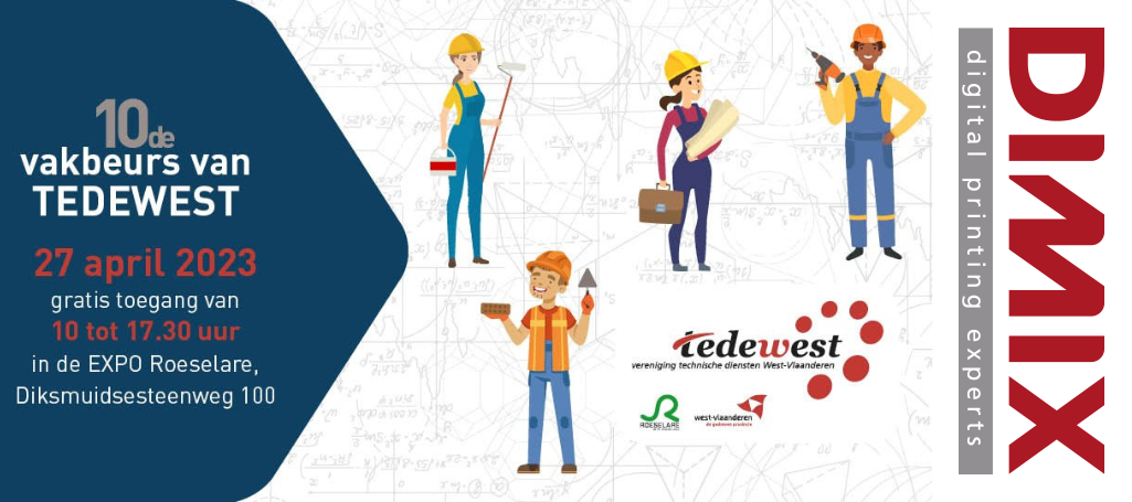Dimix neemt deel aan de 10e Vakbeurs van Tedewest. Doel vakbeurs Alle technische diensten van West-Vlaanderen samenbrengen om hun ervaring en kennis te delen en te verspreiden. De band tussen de openbare besturen en de bedrijven versterken. De doelgroep van bezoekers zijn de technische .