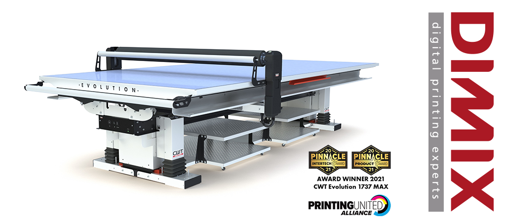 CWT Worktools kondigt met trots aan dat de PRINTING United Alliance, de meest uitgebreide vereniging van drukkerijen en grafische bedrijven in de VS, de CWT Worktools vlakbed applicator CWT 1737 Evolution Max heeft uitgeroepen tot ontvanger van de prestigieuze Pinnacle InterTech Award en Pinnacle Product Award van het jaar 2021. .