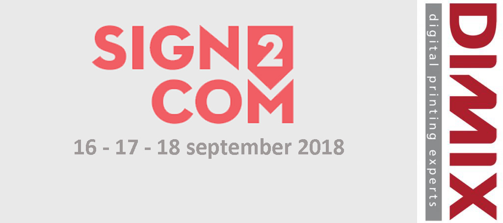 Uiteraard is Dimix opnieuw aanwezig op de Sign2com beurs. Sign2Com is dé vakbeurs voor de wereld van signage & visuele communicatie en dat al meer dan 2 decenia lang. Als toemaatje genieten bezoekers van free catering. Sign2Com vindt plaats op 16, 17 & 18 .